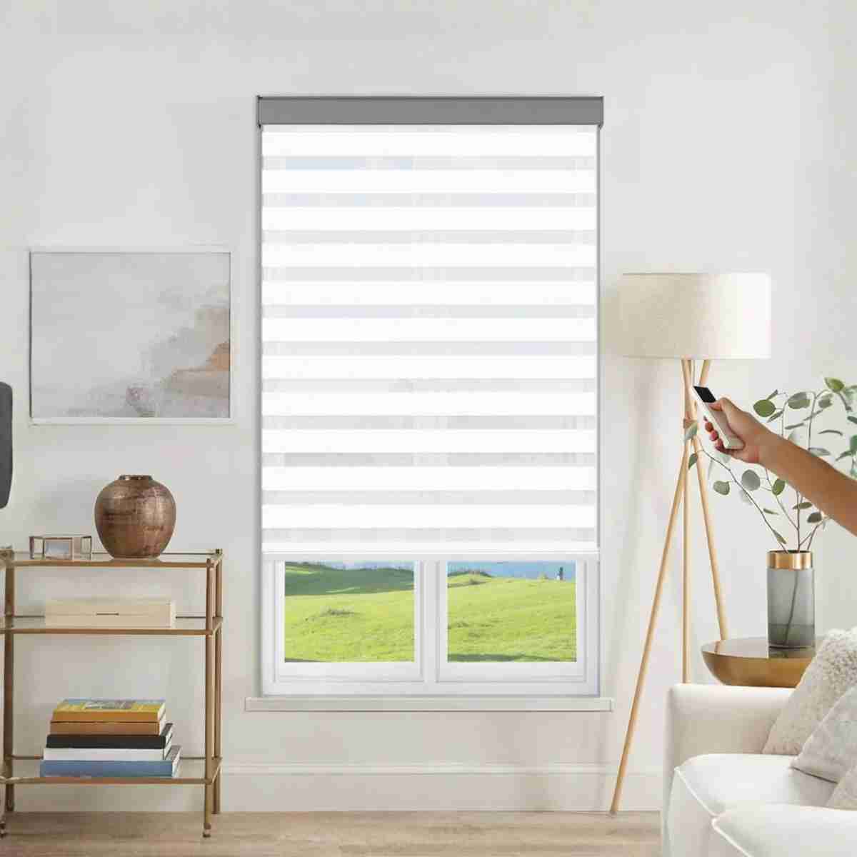 Elevate your home to the next level of luxury with the Motorized White Zebra Shades. At Cozy Home and Lifestyle, we believe in “Effortless Living,” and nothing says that better than remote-controlled window treatments. These crisp white shades offer the signature dual-layer light filtering of a zebra blind with the added convenience of silent motorization. Perfect for high-reach windows or simply creating a “Smart Home” sanctuary where you can adjust your lighting with a single click.